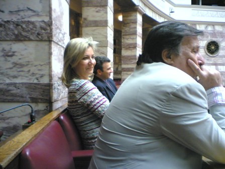 Ο Δημήτρης Κωνσταντάρας και η Έλενα Κουντουρά στα έδρανα της Βουλής