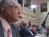 Με τα ακουστικά στ αυτιά - τα Ισπανικά του δεν είναι και...τόσο καλά- ο Δημήτρης Κωνσταντάραςπαρακολουθεί την ομιλία του κ. Μπορέλ στην αίθουσα της Γερουσίας