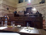 Ο πρόεδρος του Ευρωπαικού Κοινοβουλίου απευθύνεται στους Έλληνες βουλευτές και ευρωβουλευτές. Στην έδρα,η πρόεδρος της Βουλής Άννα Μπενάκη.