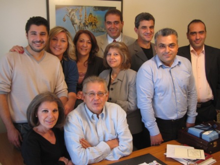 Το γραφείο σε πλήρη σύνθεση. Καθιστοί το ζεύγος Κωνσταντάρα, ο Δημήτρης και η Βίκυ.