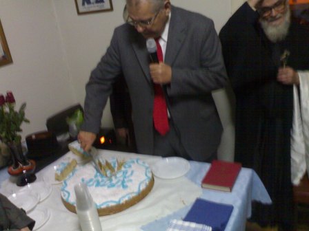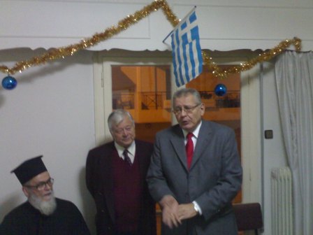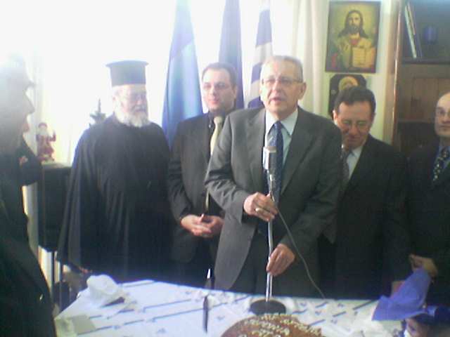 Στην κοπή της πίτας του Αγίου Νικολάου. Διακρίνεται ο πρόεδρος της Τ.Ο Νικόλαος Χανδρινός