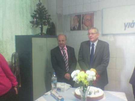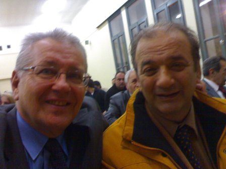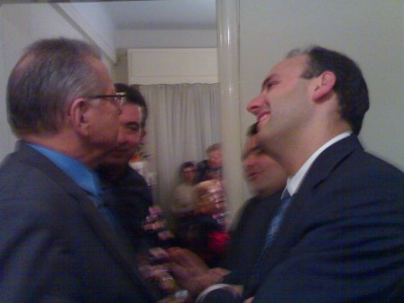 Ο Δημήτρης Κωνσταντάρας με τον πρόεδρο της ΟΝΝΕΔ Γιώργο Παπανικολάου στα Κάτω Πατήσια.