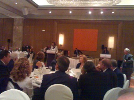 Η Υπουργός Εξωτερικών ενώ απευθύνεται στους προσκεκλημένους