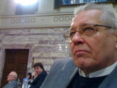 Ο πρώην επίτροπος Χρήστος Παπουτσής ακούει την ομιλία του κ. Δήμα. |
