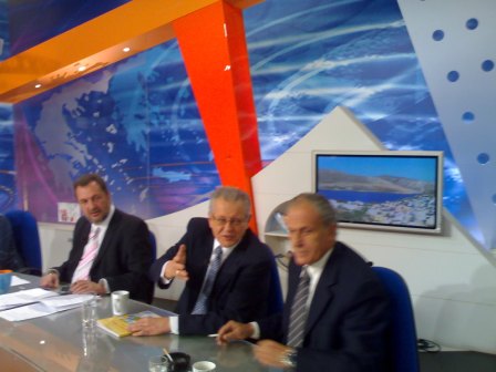 Πέμπτη, 29 Μαρτίου , ώρα 08.10 το πρωί και ο Δημήτρης Κωνσταντάρας ήταν καλεσμένος του Γιώργου Παπαδάκη στο «Καλημέρα Ελλάδα» του ΑΝΤ-1. Μαζί με τον έτερο βουλευτή-δημοσιογράφο Γιάννη Δημαρά ( με τον οποίο έχουν αρχίσει να γίνονται πλέον …ντουέτο στις τηλεοπτικές εμφανίσεις) σχολίασαν τα λεγόμενα του άθρησκου συγγραφέα κ. Καλόπουλου για το Άγιο Φως – το οποίο χαρακτηρίζει «απάτη»- και άλλα θέματα της επικαιρότητας. Ο βουλευτής είχε την ευκαιρία να αναφερθεί στην ύπαρξη και άλλων «προβληματικών» σχολικών βιβλίων εκτός αυτού της ιστορίας της ΣΤ΄Δημοτικού, όπως το βιβλίο Γλώσσας της Γ΄. Γυμνασίου στο οποίο «φιλοξενείται» κείμενο του τ. πρωθυπουργού Κώστα Σημίτη μέσω του οποίου τα Ελληνόπουλα «διδάσκονται» τις απόψεις του κ. Σημίτη για την Ευρωπαική Ενοποίηση.