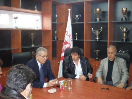 Ο πρόεδρος του ΠΑΟ Ρουφ κ. Κουνάδης καλωσόρισε τον βουλευτή και τον ευχαρίστησε για τη βοήθειά του και στη συνέχεια, έγινε εκτεταμένη συζήτηση για θέματα που αφορούν και ενδιαφέρουν την ομάδα και γενικότερα τη μεγάλη αυτή Αθηναική συνοικία.