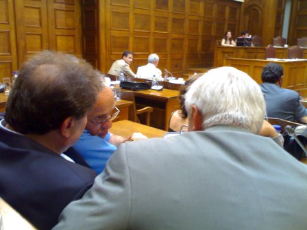 «Πηγαδάκι» με ανταλλαγή απόψεων έχουν «στήσει» μέσα στην αίθουσα βουλευτές – μέλη της Επιτροπής ανάμεσα στην δεύτερη και τρίτη συνεδρίαση που έγιναν η μια μετά την άλλη την Τετάρτη, 18 Ιουλίου 2007.