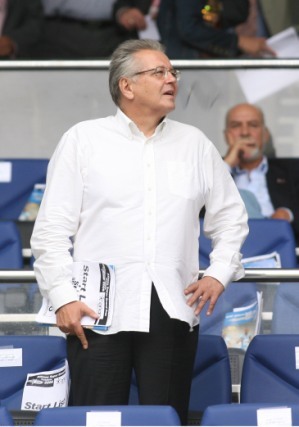 Ο Δημήτρης Κωνσταντάρας στο Ολυμπιακό Στάδιο. Στο βάθος πίσω του ο υπηρεσιακός υπουργός τύπου κ. Ροδόλφος Μορώνης.