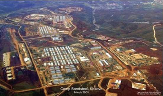 Το Camp Bondsteel είναι η μεγαλύτερη στρατιωτική βάση που δημιούργησαν οι ΗΠΑ μετά τον πόλεμο στο Βιετνάμ. Βρίσκεται στο Κόσοβο. Για την ακρίβεια καταλαμβάνει εκτάσεις στα εδάφη τόσο του Κοσσυφοπεδίου όσο και της ΠΓΔΜ, παρ’ ότι τα σύνορα των δύο προτεκτοράτων δεν είναι οριοθετημένα. Άλλωστε οι αμερικάνοι δεν έλαβαν υπόψη τα σύνορα όταν σχεδίασαν την τεράστια αυτή βάση. Η τοποθεσία επιλέχθηκε με βάση τους σχεδιασμούς των κρίσιμης σημασίας ενεργειακών δρόμων που ήδη, πριν από το 1992, είχαν χαραχτεί στους χάρτες των μεγάλων αμερικάνικων εταιρειών και του Πενταγώνου.