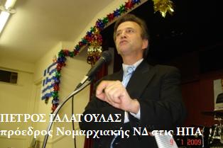 Την Παρασκευή 9 Ιανουαρίου η Νομαρχιακή οργάνωση Ανατολικών πολιτειών της Νέας Δημοκρατίας έκοψε την πρωτοχρονιάτικη πίτα της. στο Σταθάκειο κέντρο στην Ομοσπονδία Ελληνικών Σωματείων Μείζονος Νέας Υόρκης.