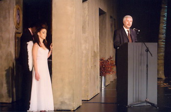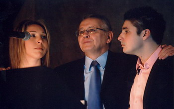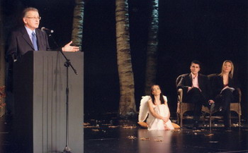 Ο συγγραφέας ευχαριστεί, στο βάθος τα παιδιά του και ο "άγγελος" |