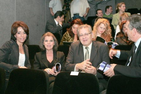 Από αριστερά η Βούλα Πατουλίδου, η Βίκυ Κωνσταντάρα, ο βουλευτής και ο Γιάννης Ιωαννίδης. Από πίσω διακρίνονται οι βουλευτίνες του ΠΑΣΟΚ Κατερίνα Περλεπέ και Θεοδώρα Τζάκρη.