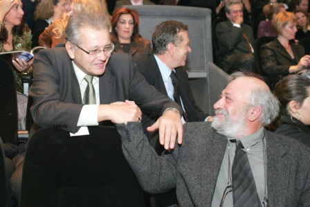 Ο Δημήτρης Κωνσταντάρας χαιρετά θερμά τον φίλο του, σκηνοθέτη Παντελή Βούλγαρη.