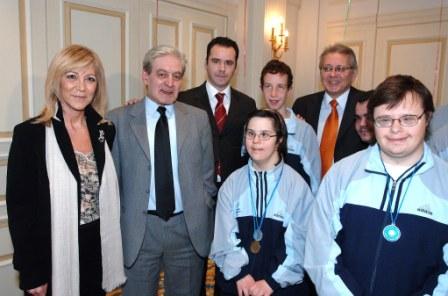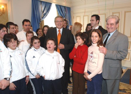 Αναμνηστική φωτογραφία με τα παιδιά των Special Olympics, μαζύ με τον Γενικό Γραμματέα Αθλητισμού Κώστα Κουκοδήμο και τον πρόεδρο του Ο.Ν.Α. Νίκο Απέργη.