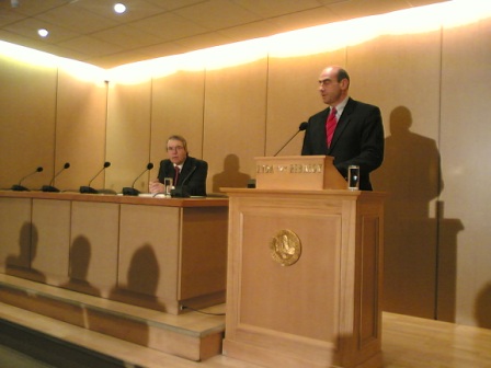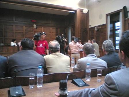 ''Αποψη της αίθουσας κατα τη διάρκεια της εκδήλωσης. Διακρίνεται ο αντιπρόεδρος του ΟΕΕΚ κ Γιώργος Μαργαρίτης, ο βουλευτής - συγγραφέας κ Μίμης Ανδρουλάκης και στο βάθος ο υφυπουργός Εξωτερικών κ Θόδωρος Κασσίμης. |