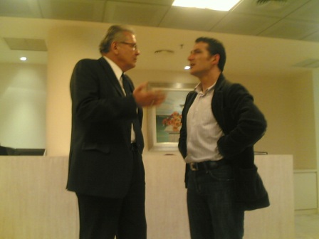 Περιμένοντας να δει την Υπουργό Τουρισμού κ. Φάνη Πάλλη - Πετραλιά, ο βουλευτής συνάντησε τον Πύρρο Δήμα ο οποίος έβγαινε απο το γραφείο της. Αντάλλαξαν λίγες κουβέντες και αστεία μέχρι να καλέσουν το βουλευτή να μπει στο γραφείο της Υπουργού.
