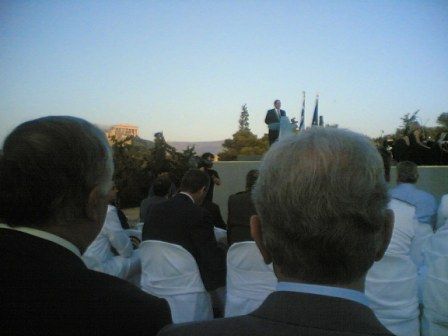 Ο πρωθυπουργός Κώστας Καραμανλής και ο πρόεδρος της Ευρωπαικής Επιτροπής Ζοζέ Μανουέλ Μπαρόζο εκφώνησαν ομιλίες, την ώρα της δύσης, με φόντο την Ακρόπολη, με αντικείμενο την προσφορά της Ελλάδας στην Ευρώπη αλλά και της Ενωμένης Ευρώπης στην Ελλάδα.