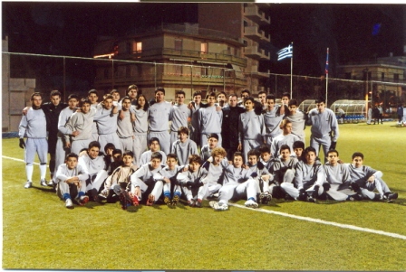 Οι ποδοσφαιριστές, προπονητές και παράγοντες της «Αθηναίδας» Κυψέλης στο γήπεδο της Αλεπότρυπας.